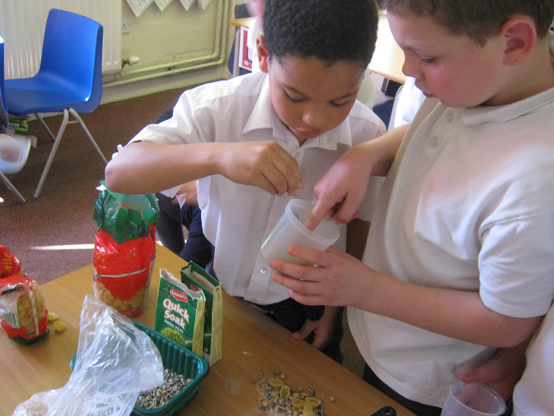 Using anything available in the classroom, but not fingers, the children had to investigate ways of separating sand, sweetcorn and pasta.